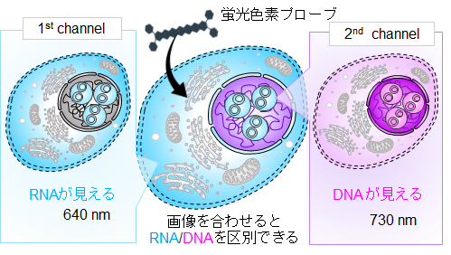 図1 細胞の中で DNA と RNA を同時に見分ける仕組み