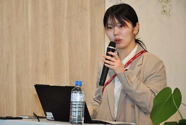 大型画面の映像で米作りの省力化の歴史を学んだ児童は、ヤンマーが用意した「ワークシート」に時折、要点をメモしながら、腰を折り曲げて行う田植えや臼を回してもみ殻を除く昔の「手作業」の大変さや、田植え機・脱穀機などの農業機械やICT(情報通信技術)を活用して省力化、効率化に努める現代の「スマート農業」の進展ぶりに驚いていた。