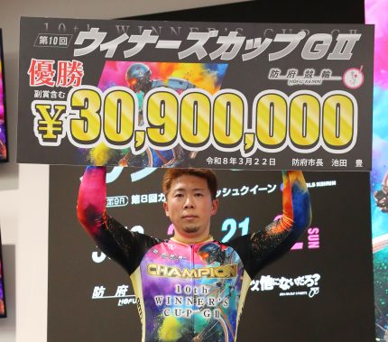 競輪の第10回ウィナーズカップ(GⅡ)の決勝が3月22日、山口県の防府競輪場でが行われ、深谷知広(静岡)が2分48秒2(上がり9秒3)で優勝。賞金3090万円を獲得した。2023年の共同通信社杯競輪以来5度目のGⅡ制覇。