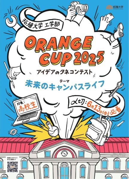 大学ってどんな感じだろうか、そして、テクノロジーの進化や社会の変化によって、これからの大学生活はどのように変化していくのだろう? 拓殖大学工学部(東京)は、便利で充実したキャンパスライフを実現するためのシステムや技術を、高校生が自由な発想で競う「ORANGE CUP 2025-アイデアのタネコンテスト」の応募を受け付けている。締め切りは6月13日(金)必着。