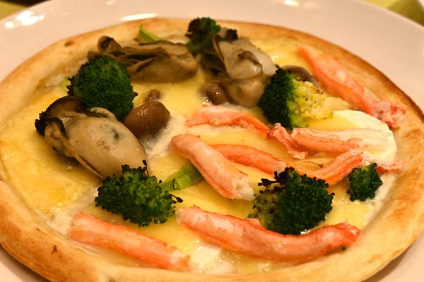 2階のレストラン「ビストロカフェももてなし家」の特別メニュー(14日まで)は、岡山県産かきの入ったお好み焼き(1600円)や、クロダイのチャウダースープ(1100円)、鳥取からは「松葉がに御膳」(1万円、要予約)など。目玉は、日本海でとれた甘みが濃厚なベニズワイガニと、瀬戸内海のプリプリしたカキを乗せたピザだ。鳥取産ナガイモ「ねばりっこ」やシメジの香りも重なり、うまみたっぷりに仕上がっている。価格はいずれも税込み。
