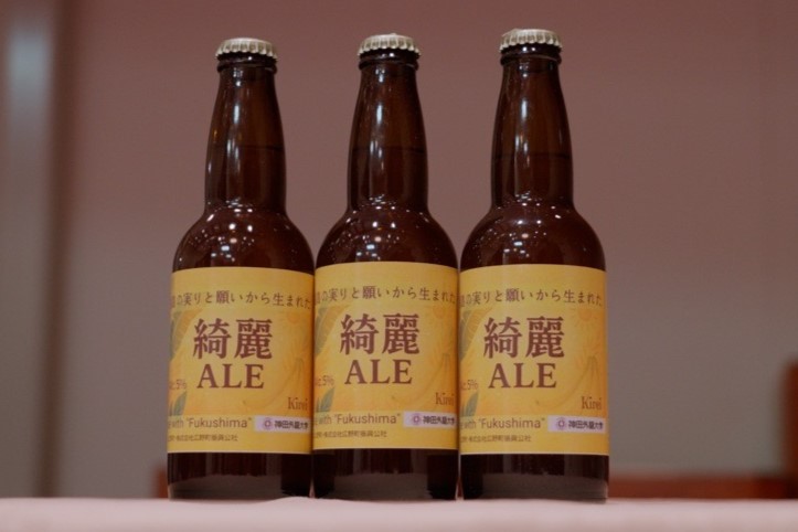 贈呈式では、学生たちが企画したビール「綺麗ALE(きれいエール)」も披露された。福島県広野町の広野町振興公社から提供された同町産のバナナ「綺麗」を原料に、クラフトビール製造会社「大鵬」(東京都大田区)が醸造を担当。震災復興新聞のデジタル版へアクセスできるQRコードを印刷してあり「単なる商品ではなく、福島と学生、企業が協働して復興の歩みを伝える発信の形」と位置付けている。大鵬に併設するレストラン「HANEDA SKY BREWING」などでの提供・販売を予定している。