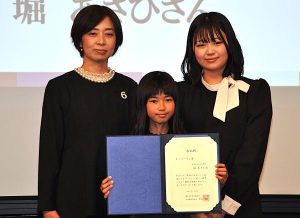 【小学生の部】西沙也佳(鹿児島市立伊敷台小1年)▽堀内里莉(福岡市立東若久小2年)▽伊藤美沙希(滋賀県長浜市立長浜北小3年)▽玉置このみ(千葉県船橋市立法典東小4年)▽金子菊次朗(長野県安曇野市立穂高北小6年)