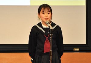 キッコーマン賞小学生の部に選定された広島市立山本小4年の堀あさひさんは、いつもお弁当を作ってくれた年の離れた姉のために“お返し”のお弁当を作った経験をつづった。「これからも家族やおじいちゃん、おばあちゃんに料理を作ってあげたい」と今後も料理を続ける考えを語った。