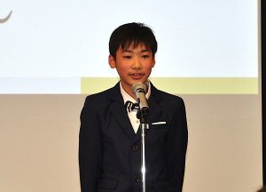 共同通信社賞に輝いた鹿児島市立伊敷台小5年の赤瀬川想太さんは、釣ったアジをから揚げにして食べた体験を伝えた。「家族との経験を作文にしたらまさかの受賞。暖かくなったらまた釣りを再開しておいしい魚料理を作る」と述べた。