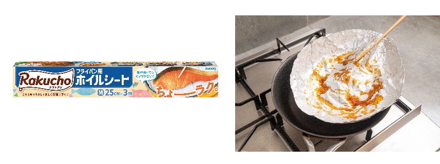 そうですよね。特に油汚れのベタベタしたフライパンを洗うのは、私たちも苦痛です(笑)。そこで提案したいのが、「調理器具を直接汚さない」という発想。「Rakuchoフライパン用ホイルシート」をフライパンに敷くだけで、タレ系のこってり料理もシートを捨てるだけで片付けが完了します。