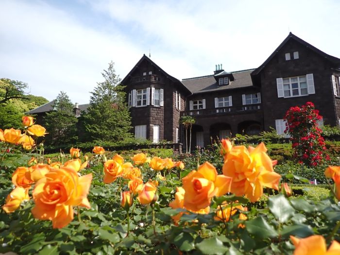 「ヨハネ・パウロ・2世」(白色・米)、「スブニール・ドゥ・アンネフランク」(オレンジ色・ベルギー)、「シャルル・ドゥ・ゴール」(紫色・仏)、「ミスター・リンカーン」(赤色・米)、「ヘルムット・シュミット」(黄色・独)など、歴史上の人物の名が付いたものをはじめ、約100種200株のバラが華やかに咲き誇る園内。洋館や京都の著名な庭師、植治こと七代目小川治兵衛(おがわじへえ)作庭の日本庭園とともに、華麗な風景をぜいたくに味わえる。