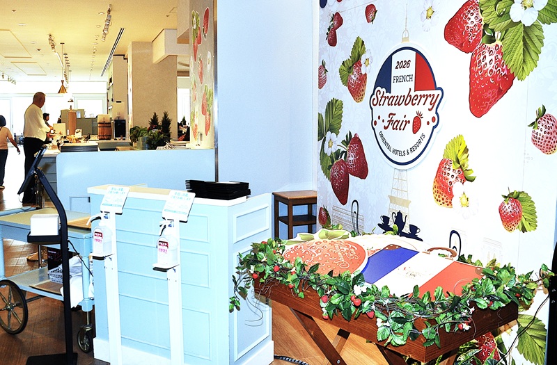 このレストランでは旬のイチゴとフランスの郷土料理をテーマにしたビュッフェフェア「ストロベリーフェア~フランスグルメ紀行~」が1月31日から始まっており、客が持つトレーには、フランスの伝統菓子などをトッピングしたイチゴ盛りだくさんのスイーツや、アルザス地方のキャベツとソーセージの煮込み料理で真っ赤なイチゴマスタードを添えた「シュークルート」、タラとオリーブを合わせたプロヴァンス地方の伝統料理「ブランダード タプナード」など特色あるフランス郷土料理が載っている。注文するとイチゴクリームをかけてくれるストロベリーモンブランのテーブル前には数人が順番待ちしている。