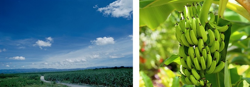 フィリピンのドール自社農園(左)と出荷前のバナナ