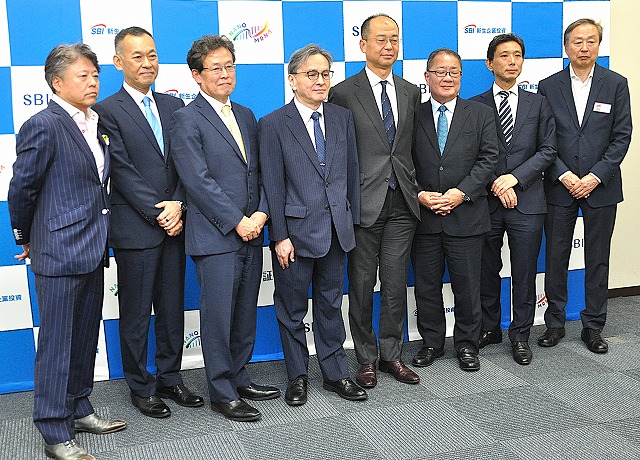 SBI新⽣企業投資の植坂謙治社長らSBI側の関係者と一緒に記者会見したNANOの秋永社長は、SBI証券との議論や多くの創薬企業らと面談を重ねる中で「SBIグループと提携して買収した企業のIPOなどで利益を出し当社の企業価値を高める、当社の革新的ビジネスモデルの実行は可能であると確信した」と説明。