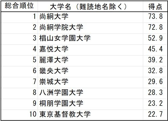 漢字の読みで難しいのは地名。固有名詞であり想像もつかない読み方をする地名も多く、知らないと読めないのは当然ともいえる。さて、こちらは地名ではなく大学名の話。東京・小平市の嘉悦大学が12月12日の「漢字の日」を前に、若い世代の基礎学力、特に漢字の読み書き能力の現状に関する「漢字の読みが難しい大学(“難漢”大)調査」を実施した。発表されたベスト10、読めるかな~?