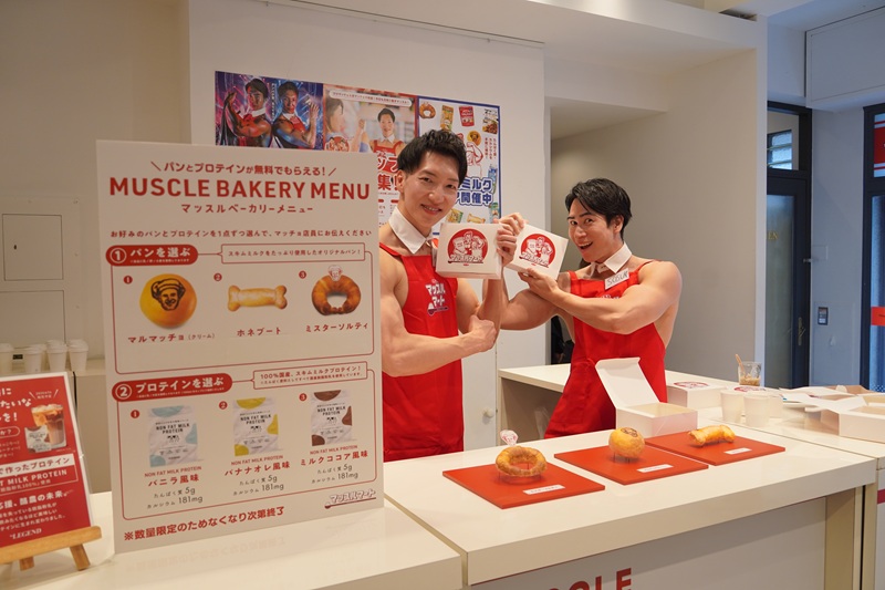 当日は、スキムミルクを配合した筋肉型のパン3種やプロテイン飲料、イートデザイナーのシズリーナ荒井さんによるスキムミルクを活用したレシピが書かれた「マッスルマートマガジン」を無料配布する。また、スキムミルク配合の食品やスキムミルクを繊維に練り込んで制作したアパレルなど15種類以上の関連商品を販売する。500円以上の購入で「マッチョくじ」を引くことができ、くじで引いたポーズでマッチョ店員と一緒に写真を撮ることができる。