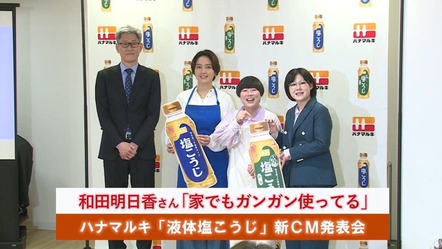 ハナマルキは3月25日、料理家・食育インストラクターの和田明日香さんを起用した「ハナマルキ『液体塩こうじシリーズ』新CM発表会」を都内で開催した。