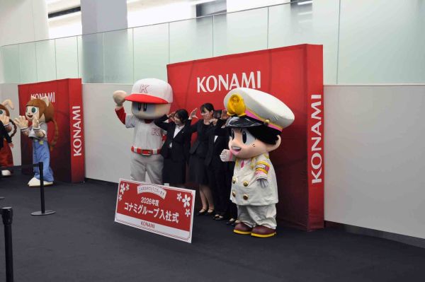 式の前後には同社のゲームキャラクターの着ぐるみが登場し新入社員をお出迎え。「パワフルプロ野球」のパワプロくんや「桃太郎電鉄」の桃太郎などとともに、笑顔の新入社員が記念写真を撮影する一幕も見られた。