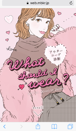 株式会社千趣会(本社:大阪市 代表取締役社長:星野裕幸 以下千趣会)のグループ会社で20 代女性向けファッションサイトを運営する株式会社モバコレ(本社:東京都品川区 代表取締役社長:山田 雄一 以下モバコレ)は、創業11周年を記念して、お客さまが診断ゲームを楽しみながらお買いもの体験ができる『アウターコーデ診断』ゲームを11月14日(火)にモバコレサイト内に開設します。