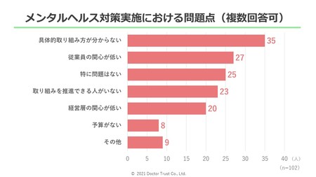 3つ目の設問では、「メンタルヘルス対策実施における問題点」を尋ねました。