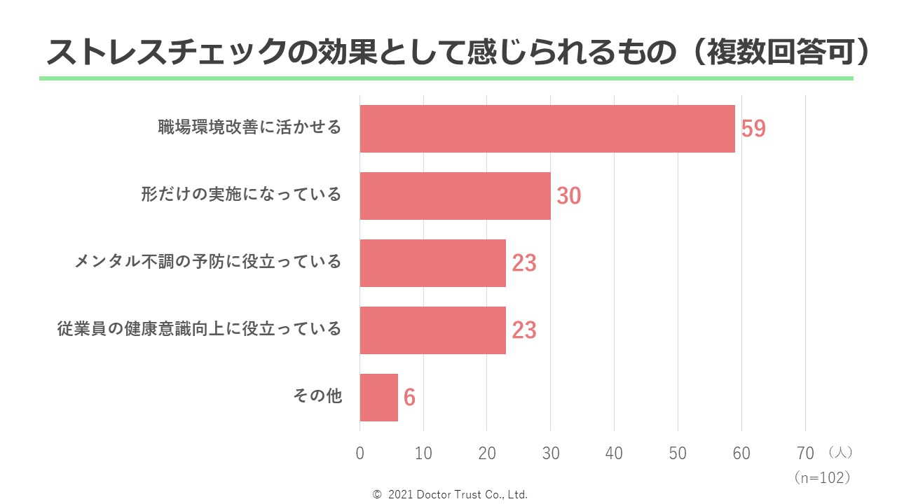2つ目の設問では、「ストレスチェックの効果として感じられるもの」を尋ねました。