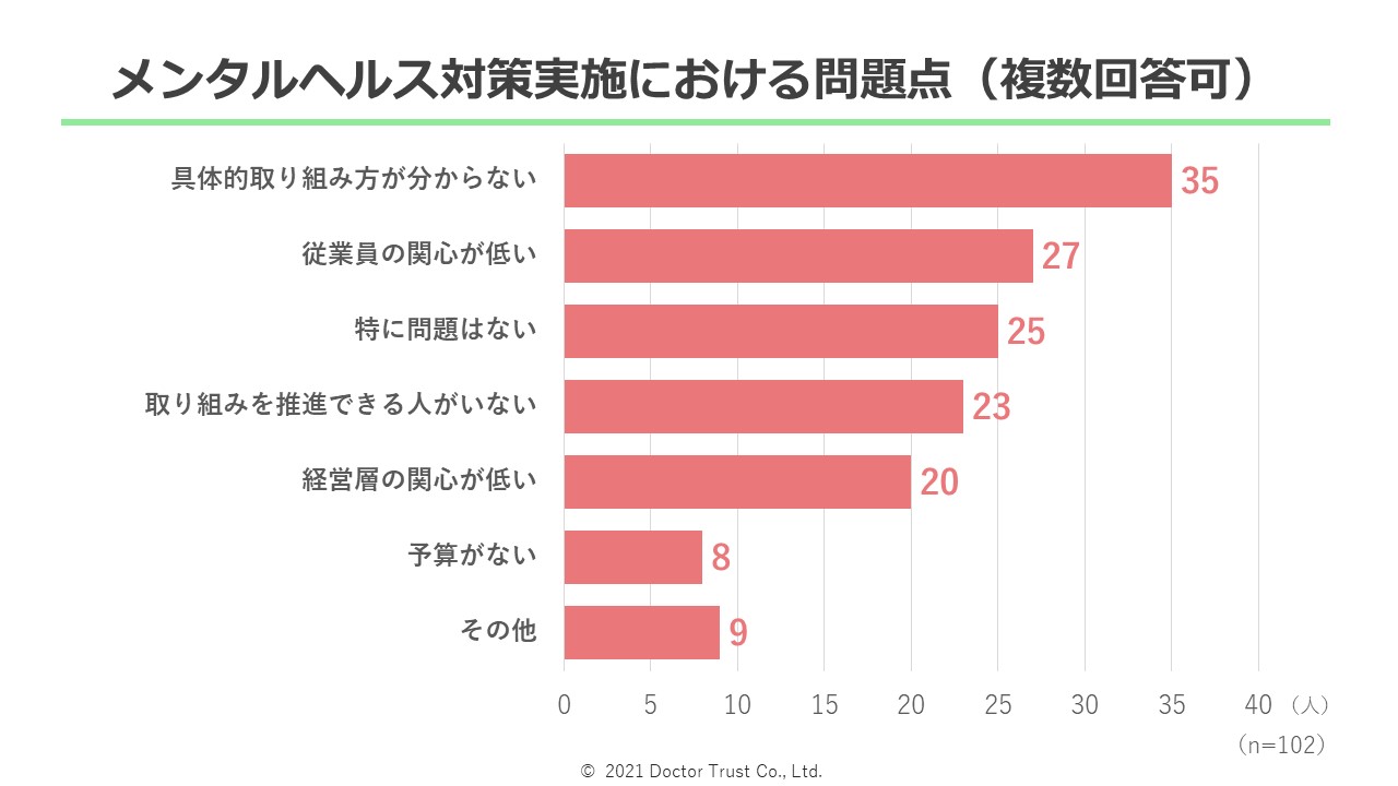 3つ目の設問では、「メンタルヘルス対策実施における問題点」を尋ねました。