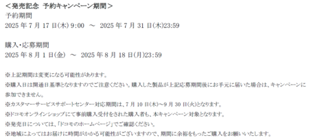 また、「Samsung Galaxy Z Flip7」の純正・専用アクセサリーは2025年8月1日(金)より販売を開始いたします。詳細はドコモオンラインショップ(https://onlineshop.smt.docomo.ne.jp/limited_options/article/930006.html?icid=OLS_limited_options_article_930006_from_option_search_bnr_slide)をご確認ください。
