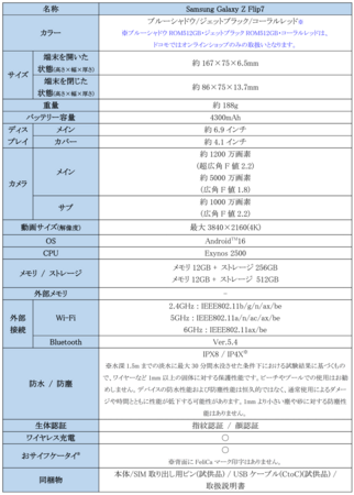 <主な仕様 :「Samsung Galaxy Z Flip7」