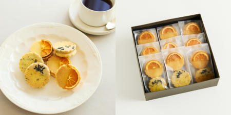 細かく刻んだオレンジピールを練り込んだサブレ生地に、バターの風味が広がるオレンジクリームを挟んだ「オレンジサブレ」と、アールグレイ香るサブレにホワイトチョコレートクリームをあわせた「ミルクティーサブレ」の、2種を詰め合わせました。オレンジと紅茶の香りがふわりと広がる、夏のティータイムにおすすめのスイーツです。