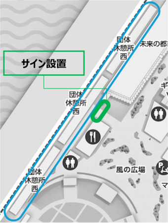 近隣エリア(西ゲート正面に立地する飲食施設およびフューチャーライフゾーン内の飲食施設が対象)からの飲食持ち込みも可