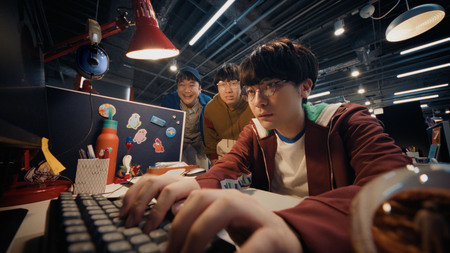 彼らが演じるのは、スマホゲーム開発会社でプログラマーとして働く3人。新CMでは、リズムアクションゲーム「音楽とゴザルたち」の開発に挑戦する様子を描いています。エラーの連続で落ち込む時も、ゲームが完成し嬉しい時も、「サントリー生ビール」で乾杯し自分たちを労う。そんな等身大の姿を、「YOASOBI」の楽曲「UNDEAD」にのせて表現しました。「♪生きていることとは変わり続けることだ」などの歌詞に象徴されるように、変化や挑戦を肯定する「UNDEAD」の世界の中で、一生懸命生きる3人と、いつも彼らのそばにある「サントリー生ビール」を重ねることで、「サントリー生ビール」が前向きに生きる力を後押しするおいしい生ビールであることを伝えていきます。ドラマのように見ごたえのある新ストーリーにご注目ください。