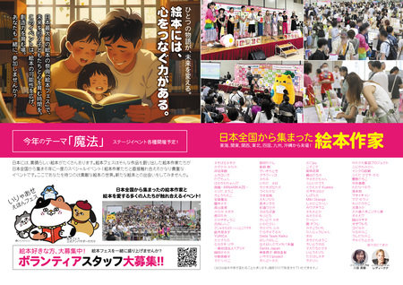 日本全国から絵本作家が集まり絵本の展示・販売:大人向け・子供向けの絵本が多数出品。 体験型プログラム:絵本作家による読み聞かせやサイン会。 絵本をテーマにしたワークショップ:絵を描いたり想像する楽しさを体感 交流の場:絵本ファンやクリエイターとつながる貴重な機会。