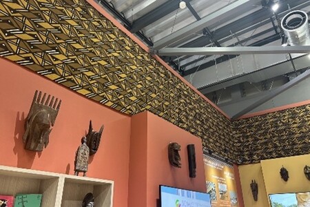 会場南西部「コモンズD」館にある、同国パビリオンでは、床面に描かれたジョリバ川を模した大きな地図を歩きながら、川と結びついた暮らしの歴史や文化に触れられるほか、木琴「バラフォン」や打楽器「ジャンベ」などの伝統楽器を実際に鳴らす体験もできます。また、「Better Cotton」基準(※2)を満たす持続可能な綿花栽培など、暮らしと環境のつながりを見つめ直す取り組みも紹介されます。