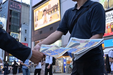 新橋駅西口広場で号外配布!