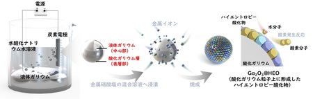 液体ガリウムを使ってハイエントロピー酸化物超薄膜を作る 歪みの効果で高率的な酸素発生反応を実現