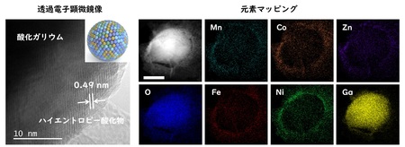 図2 酸化ガリウム粒子上に形成したHEOの電子顕微鏡観察,及び元素マッピング