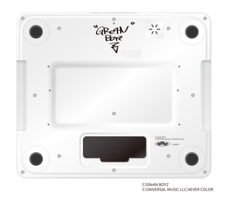 音声体組成計は、毎日楽しく計測できるよう、本商品のために新たに収録したメンバー4人の音声で初期設定や計測手順、計測結果をナビゲートします。計測結果に応じて「ヒュー! いいからだー! 頑張ってるんだねー! “この状態を繋げて前へ進めよ”」(『声』2009年リリース)や「おおお! 鍛えてるな! カッコいいぞ! いつも頑張ってる証拠だね。“本当の強さ”」(『遥か』2009年リリース)など、歴代の楽曲の歌詞の一節を盛り込んだオリジナルメッセージでファンの健康づくりを応援します。本体色は「GRe4N BOYZ」のオフィシャルグッズで人気のカラーを採用し、中央にはグループのロゴを大きく配置してスタイリッシュに仕上げました。裏面にはメンバーによるグループサインをあしらっています。