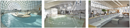 ゆ~ぷるにらさき 韮崎市健康ふれあいセンターは、市民の余暇の充実並びに健康及び福祉の増進に寄与するために設置された、ガラスドームが特徴的な日帰り温泉施設です。ジェットバスや露天風呂・サウナなど、多種多様な浴槽があり、この他にも、一年中楽しめる全長45mの流れる屋内温水プールやスタジオが整備され、フィットネス教室を定期開催しています。お子様からご高齢の方まで、どなたでも気軽にご利用いただけます。