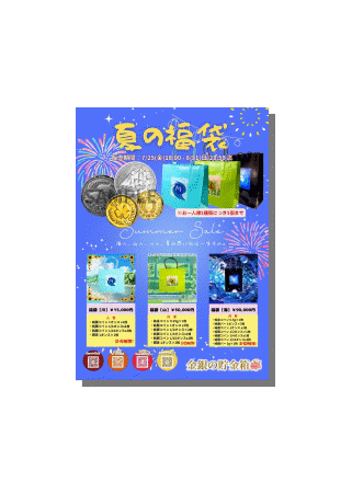 〈金銀の貯金箱〉の夏限定福袋。 この機会をどうぞお見逃しなく。