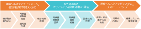 2025年中にトラック運送事業者の健康起因事故削減に向けた共同セミナーを開催し、健康起因事故削減に向けた啓発活動を積極的に行っていきます。また、相互送客を実施し、トラック運送事業者の健康診断結果データの一元管理や再検査の受診率向上に貢献します。