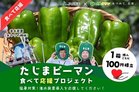 JAタウン「あつめて、兵庫。」にて販売する「たじまピーマン」関連商品を1箱ご購入いただくごとに、「JAたじまピーマン協議会」が100円を支援金として積み立てます。