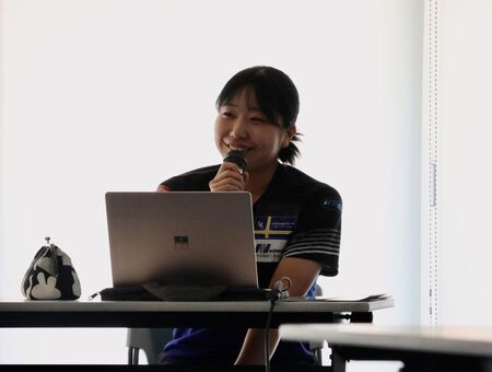開会式前に三浦由唯菜選手(札幌国際大学・FISU冬季ワールドユニバーシティゲームズ(2025トリノ)金メダリスト)を講師に迎え、日常の食事内容、大会期間中の食事内容、トレーニングなどについて、自身の体験に基づいてお話しいただく講習会を実施しました。その後、管理栄養士によるスポーツ栄養教室を実施しました。選手たちは真剣に聞き入っている様子でした。