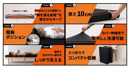 高める“トレーニング”の一部だと考え、整体師であり、ご自身もフィジーク選手でもある、きむら整体院(代表 木村誠氏、店舗所在地:宮城県大崎市)の木村誠氏と共同開発し、マッチョな人のために 細部まで工夫を凝らしました。商品企画から製造まで東北で行った“メイド・イン・東北”を追求したマットレスを