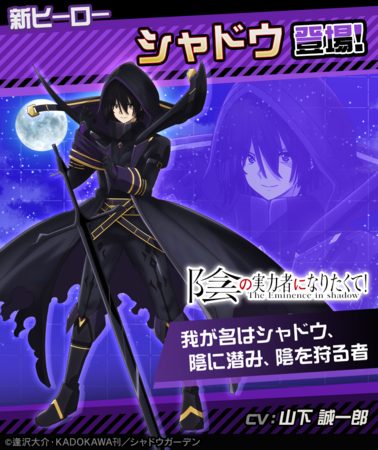 今回のコラボレーションイベントでは、新コラボヒーローとして「シャドウ」が参戦。また、「陰の実力者になりたくて!」のキャラクターをモチーフとしたコラボコスチュームが登場するほか、ヒーローガチャやカードガチャ、ログインボーナスなど、期間限定で盛りだくさんのイベントも実施します。