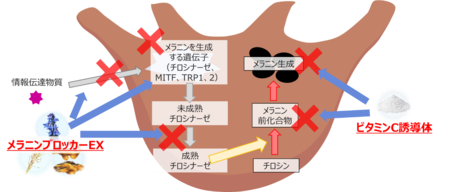 つまり、「メラニンブロッカーEX」とあわせて、計5つの段階でメラニンの生成を阻害します。