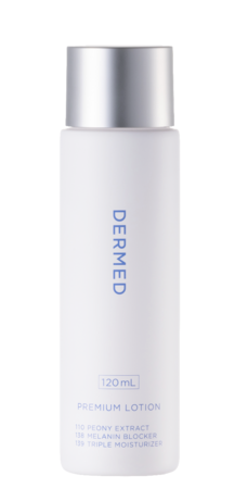 デルメッド プレミアム シリーズ。 左から 「プレミアム ローション」「プレミアム エッセンス」「プレミアム UVベイス」