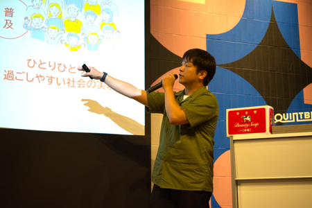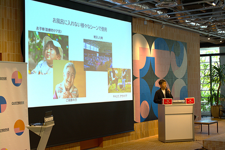 同社の事業領域において、未充足なニーズの探索にあたり“いつでもどこでも心地よい清潔を届ける”という使命にたどり着いたことを、ステートメントとしてお伝えしました。このプロジェクトの立ち上第一弾の新商品「SUSUGU」を紹介し、開発からこの発売直前に至るまでの試行錯誤、共創のなかで実現出来た取り組みなど、新しい清潔のカタチを目指す想いとともに、ご来場の皆様を共有しました。