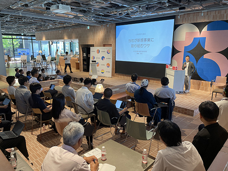 「現状維持」に対する危機感であることをお伝えし「両利きの経営」のうち“知の探索”を怠ってはならないと考えていること、そして自身から次世代への種まきのひとつとして、新規事業に取り組んでいると紹介しました。