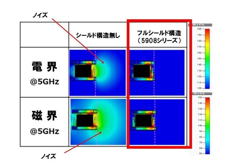 図3:シールド無し構造とフルシールド構造※1(5908シリーズ)での