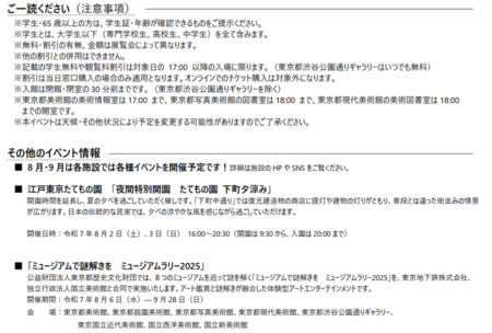 対象施設 東京都美術館(上野)、東京都庭園美術館(目黒)、東京都写真美術館(恵比寿)、