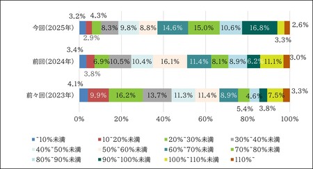 ・5%未満の企業の割合が顕著に減少しており、取り組みが遅れていた企業での改善が進みだしている様子が窺える。