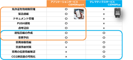 ●テレマティクスサービス「CiEMS Plus」と連動するので車両管理を一元化できる
