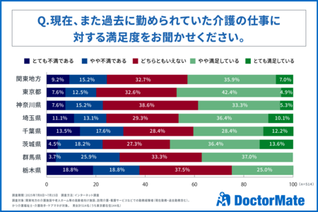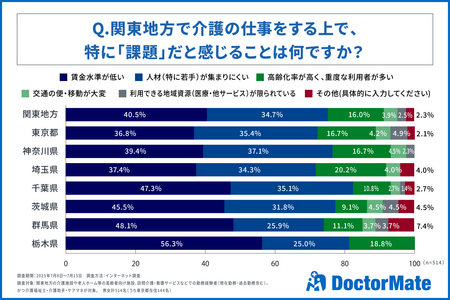 介護事業所向けに医療ソリューションを提供するドクターメイト株式会社(本社:東京都中央区、代表取締役・医師:青柳 直樹、以下ドクターメイト)は、この度、関東地方に勤務する介護職員514名を対象に、介護の仕事に関する意識調査を実施いたしました。