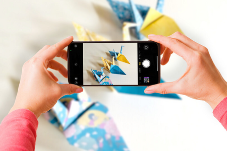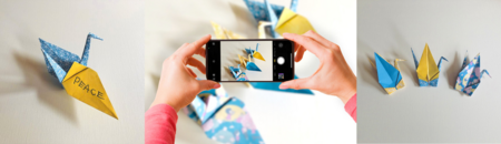 (おりづるをアップで撮影したり、おりづるを手に持っているところを誰かに撮ってもらったり、